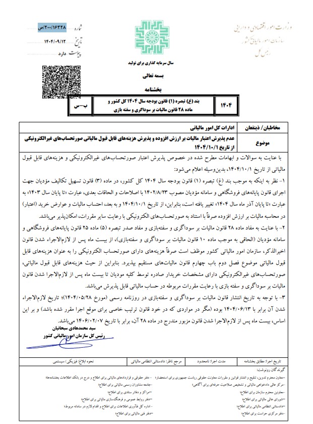 آیا اعتبار فاکتور های خریدی که در قسمت جزئیات اطلاعات معاملات اظهارنامه ارزش افزوده پاییز 1404 ثبت میکنیم، با توجه به بخشنامه 200/16328/ص مورخ 1404/09/12 مورد قبول هست؟