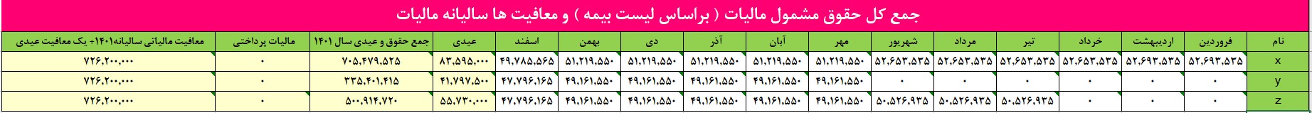 ترکیب معافیت مالیات حقوق و معافیت مالیات عیدی