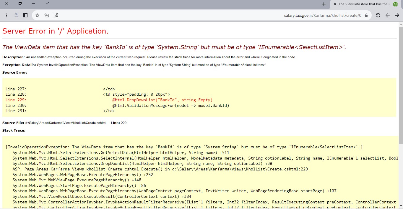 خطای صدور قبض مالیات حقوق در ارسال لیست در سامانه