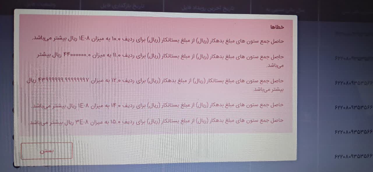 سلام سامانه به من خطای مغایرت ستون بدهکار و بستانکار میده درصورتی که تمام ارقام و جمع ها درسته چیکار باید کرد