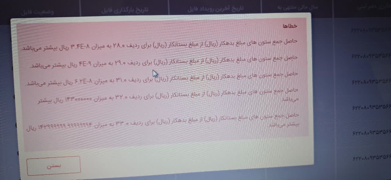 خطای مغایرت ستون بدهکار و بستانکار در ارسال دفاتر الکترونیک